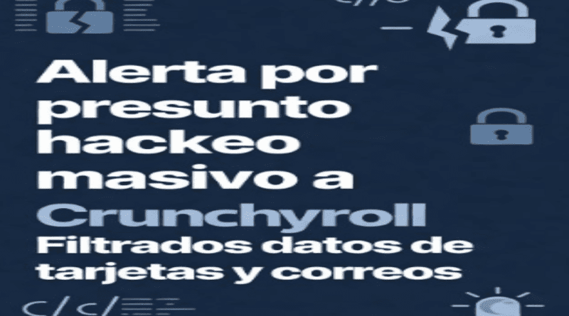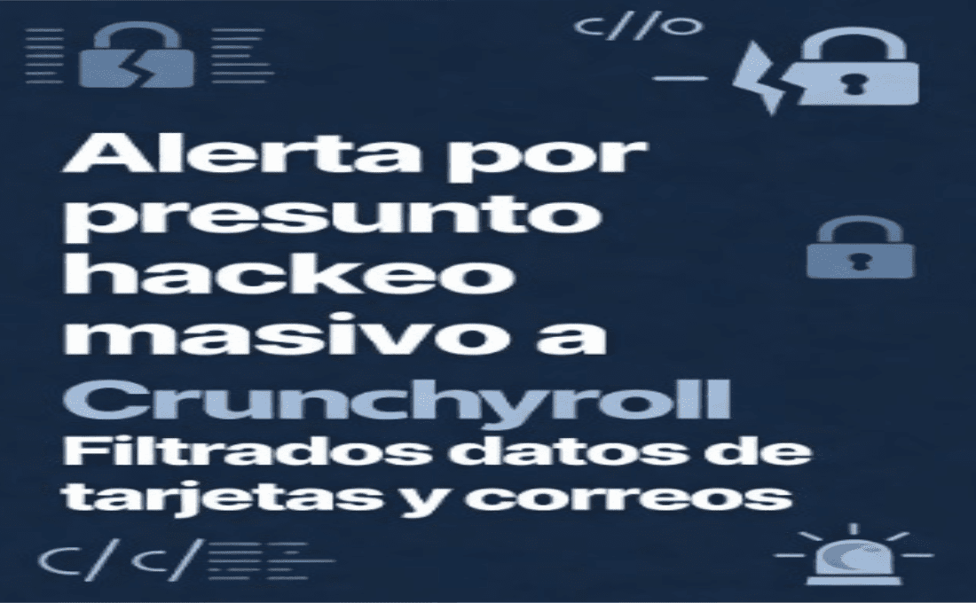 Se reporta un presunto hackeo masivo a Crunchyroll que habría expuesto cerca de 100 GB de información de usuarios, incluyendo correos electrónicos, direcciones IP y datos asociados a tarjetas de crédito.