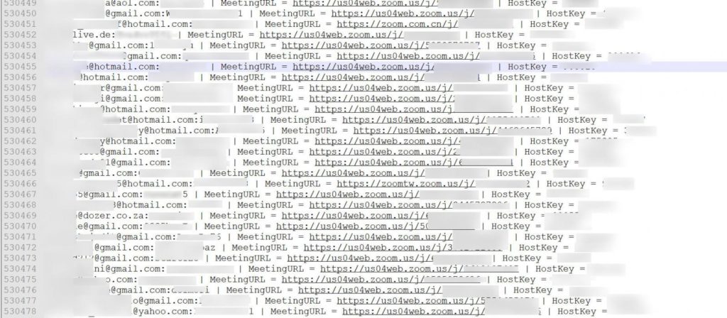 Las cuentas compradas incluyen la dirección de correo electrónico de la víctima, la contraseña, la URL de la reunión personal y su HostKey . y los que han participado en estas famosa plataforma