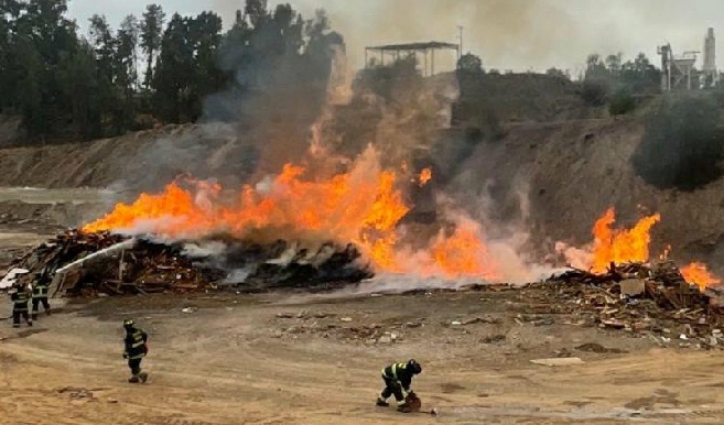 Arduo trabajo mantuvo a bomberos de diversas compañías, en el incendio de maderas y escombros en el interior de pozos areneros en la comuna de la Florida.