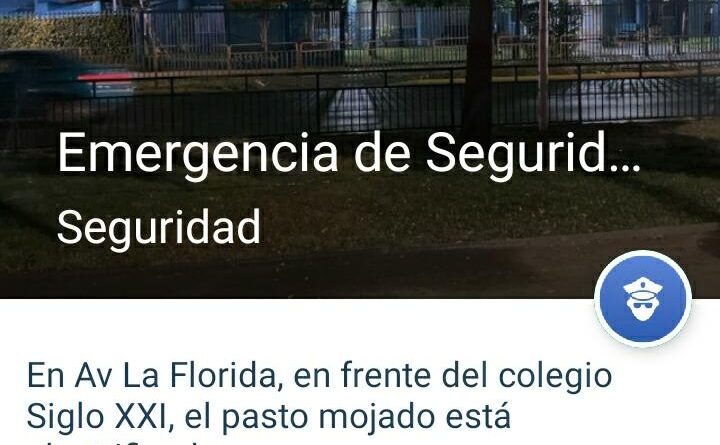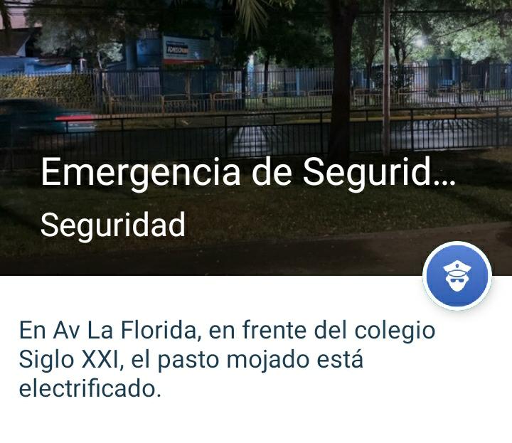 Reportes recientes revelan una situación preocupante en Avenida La Florida, justo frente al Colegio Siglo XXI, comentan que el pasto mojado se encuentra electrificado, según comentarios compartidos en la plataforma de Sosafe.