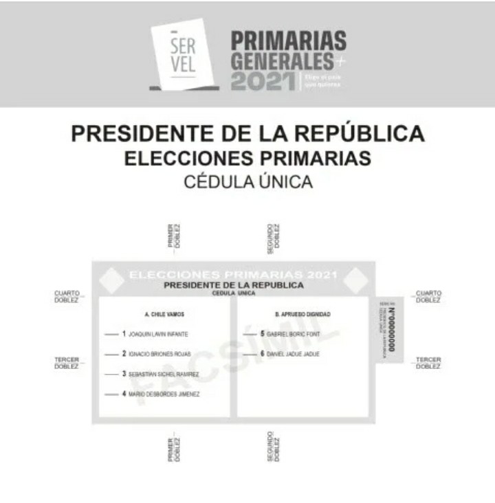 También los que no militan en partidos políticos, estos recibirán una sola papeleta, donde deberán escoger, por candidatos de Chile Vamos o Apruebo Dignidad. En caso que marquen preferencia en ambos listas, su voto quedará nulo